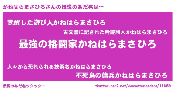 | 意味不明あだ名 | 『かねはらまさひろフォーエバー』 |