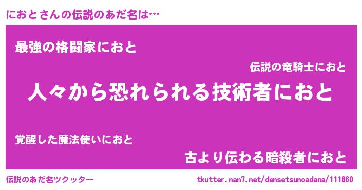 | 男性向けラノベタイトル風あだ名 | 『おまえをオタクにしてやるから、俺をにおとにしてくれ! 』 |