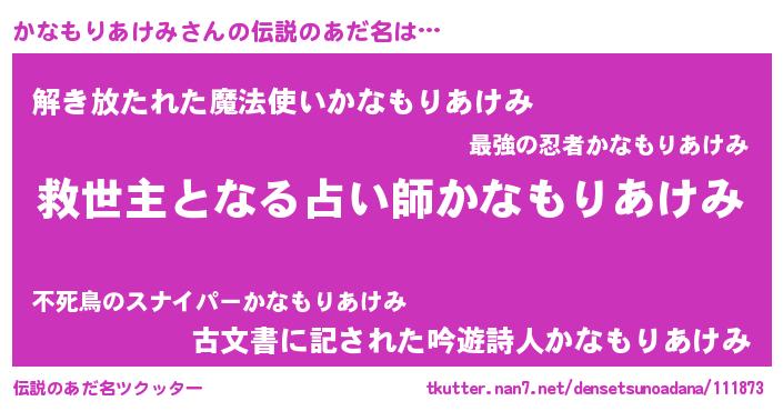 | ヘコむあだ名 | 『かなっ子』『かなもりあけみ(笑)』 |
