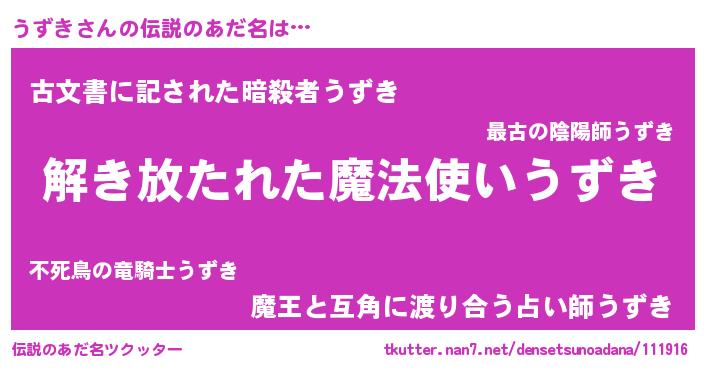 | ヒーロー風カッコイイあだ名 | 『魔戒騎士ウズ』『ネオウズキ』 |