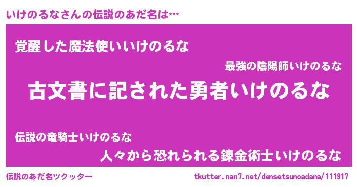 | 意味不明あだ名 | 『永久保存いけのるな』 |