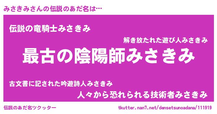 | ヒーロー風カッコイイあだ名 | 『サイバー戦士ミサキミ』『仮面ミサダー』 |