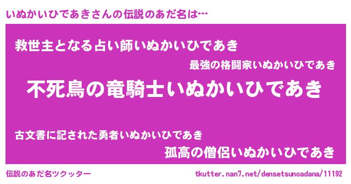| ヒーロー風カッコイイあだ名 | 『スーパーイヌカイヒデアキ』 |
