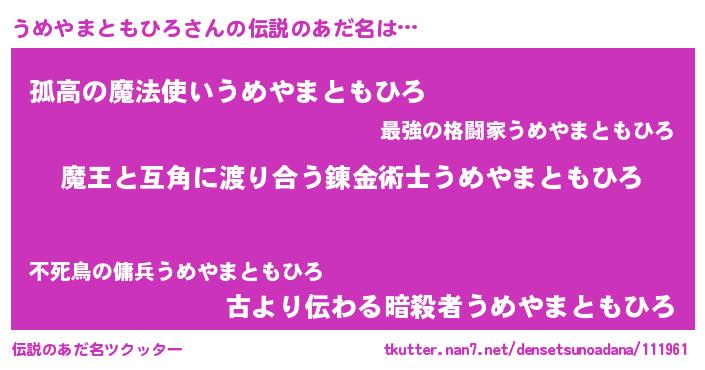 | 女子向けラノベタイトル風あだ名 | 『うめやまともひろ恋絵巻』 |