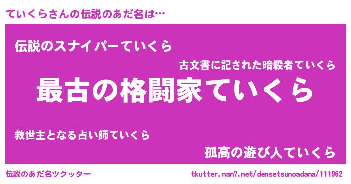 | ヒーロー風カッコイイあだ名 | 『ウルトラていくらマン』『幻影騎士テイ』 |