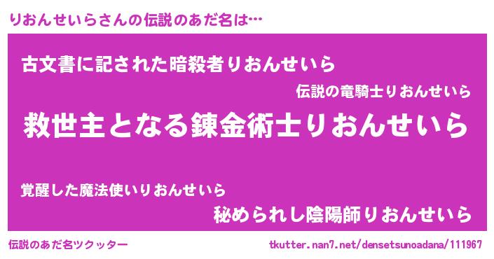 ヒーロー風カッコイイあだ名 慈愛の使者りおんせいら