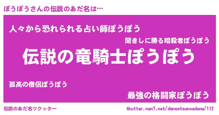 | 男性向けラノベタイトル風あだ名 | 『緋弾のポウポウ』『ぽうぽうの憂鬱』 |