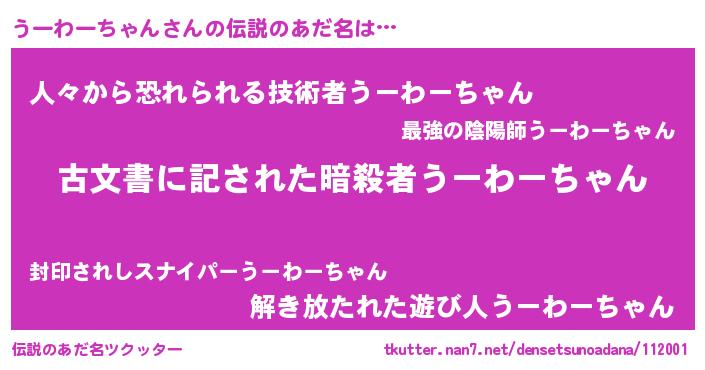 | ヘコむあだ名 | 『うーわーちゃん(笑)』『うーを』 |