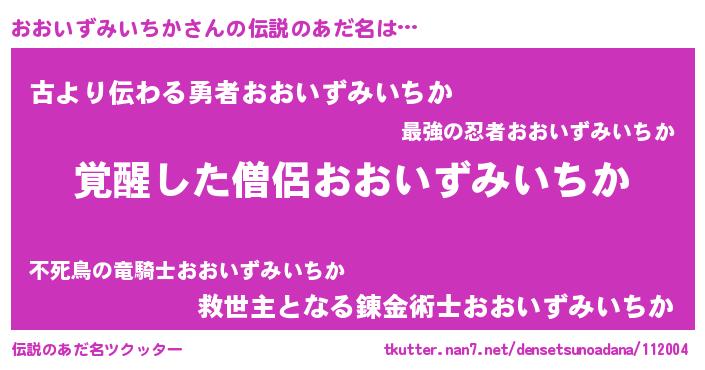 | 男性向けラノベタイトル風あだ名 | 『おおいずみいちかに滅ぼされるだけの簡単なお仕事です』 |