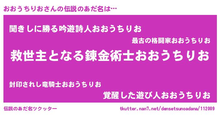 | ヘコむあだ名 | 『おおうちりお(苦笑)』『おおお』 |
