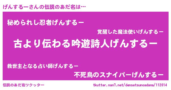 | ヒーロー風カッコイイあだ名 | 『ネオゲンスルー』『スーパーゲンスルー』 |
