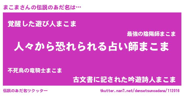 | 女子向けラノベタイトル風あだ名 | 『まこま夫妻のなれそめ』『闇のまこま』 |