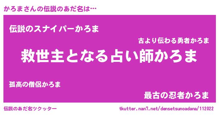 | 女子向けラノベタイトル風あだ名 | 『死神かろまの再婚』『かろま伯爵の花嫁』 |