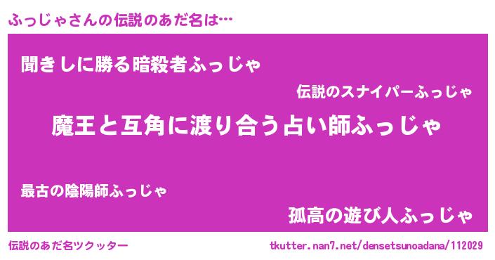 | 男性向けラノベタイトル風あだ名 | 『転生したらふっじゃだった件』 |
