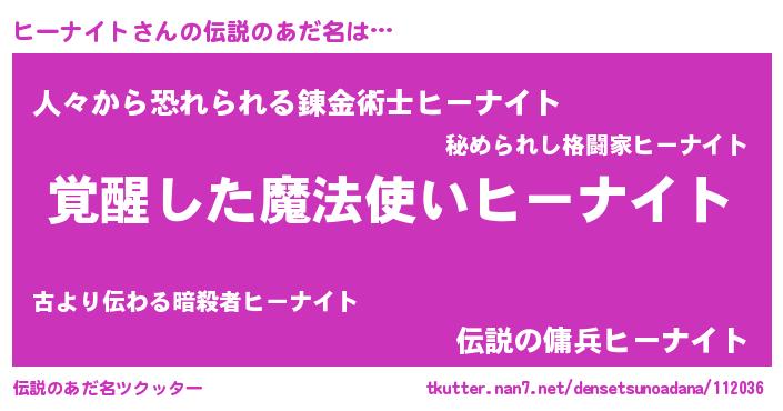 | 意味不明あだ名 | 『住所不定無職ヒーナイト(13歳)』 |