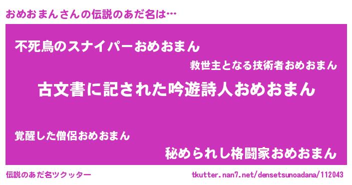 | 意味不明あだ名 | 『自称おめおまん』『永久保存おめおまん』 |