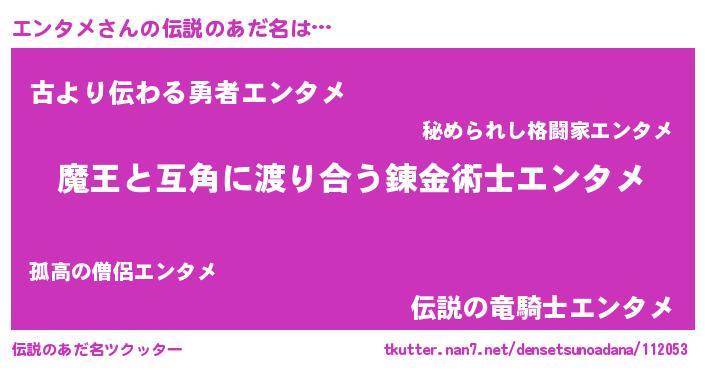 | ヘコむあだ名 | 『エンタメ(震え声)』『エンっふぃ~』 |