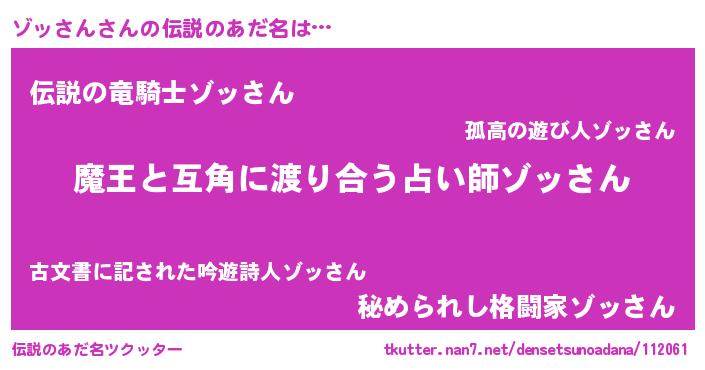 | 女子向けラノベタイトル風あだ名 | 『ゾッさん恋絵巻』『闇のゾッさん』 |