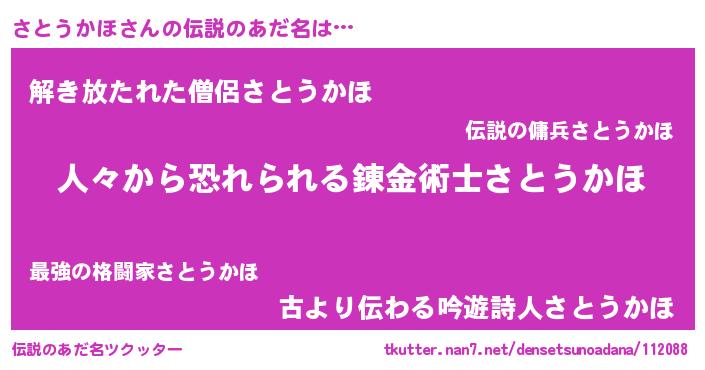 | ヒーロー風カッコイイあだ名 | 『超時空戦士サトウカホ』『仮面サトダー』 |