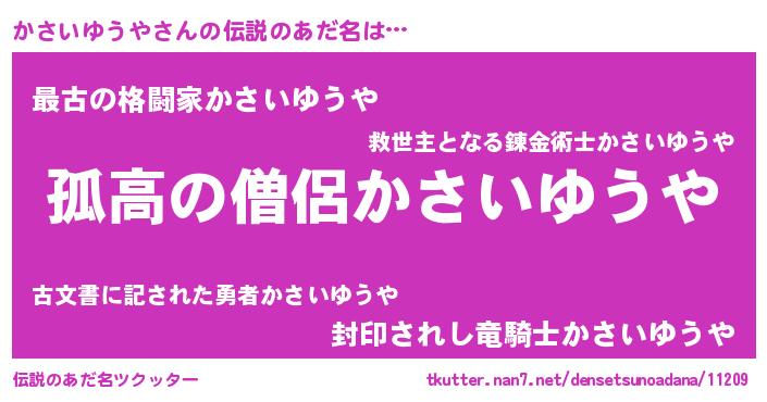 | 女子向けラノベタイトル風あだ名 | 『かさいゆうやは平凡を望む』 |