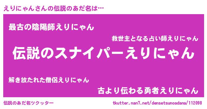 | 胡散臭い通販商品みたいなあだ名 | 『必ず成功する霊験あらたかなお札…その名も「えりにゃん」』 |