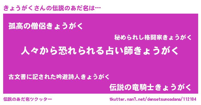 | 意味不明あだ名 | 『自称きょうがく』 |
