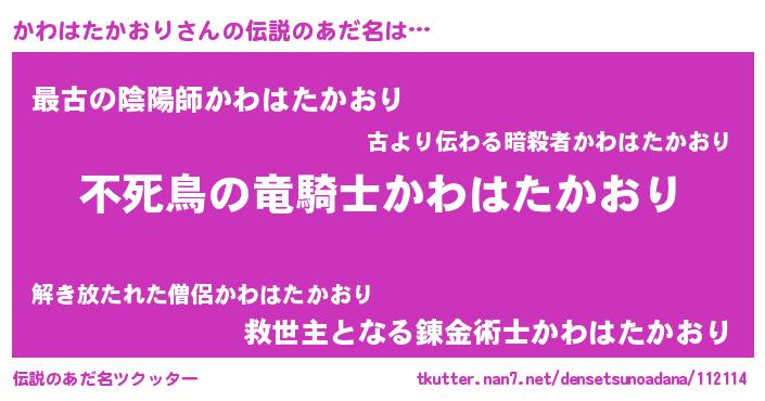 | ヒーロー風カッコイイあだ名 | 『スーパーカワハタカオリ』 |