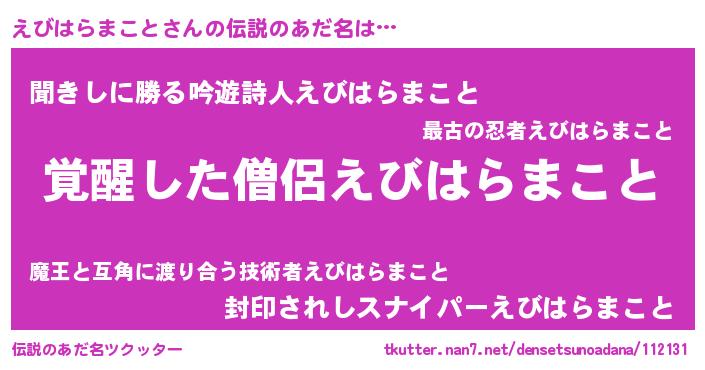 | ポケモン風あだ名 | 『エービイ』『ヒエビハラマコト』 |