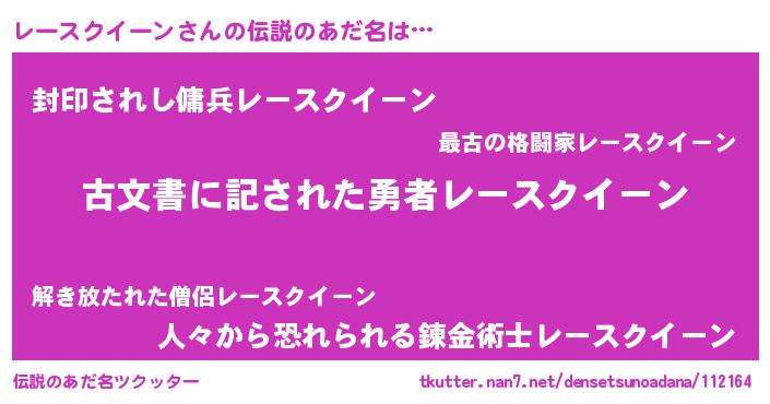 | 胡散臭い通販商品みたいなあだ名 | 『あなたにだけ特別に提供する世界で10本だけ現存している希少なブランデー…その名も「レースクイーン」』 |