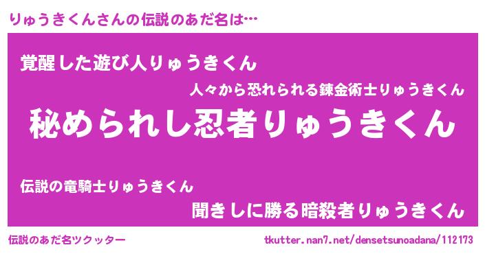 | ファンタジー風あだ名 | 『エターナルリュウキクンー』 |