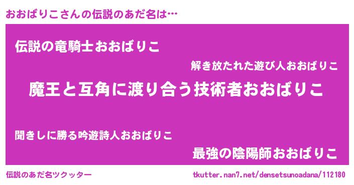 | 胡散臭い通販商品みたいなあだ名 | 『世界中を虜にした100年もののヴィンテージワイン…その名も「おおばりこ」』 |