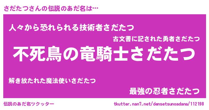 | 男性向けラノベタイトル風あだ名 | 『魔弾の王とさだたつ』『さだたつの憂鬱』 |