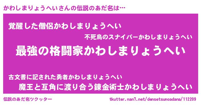 | ファンタジー風あだ名 | 『エターナルカワシマリョウヘイー』 |