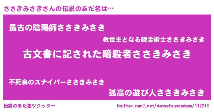 | 意味不明あだ名 | 『永久保存ささきみさき』 |