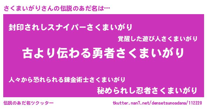 | 意味不明あだ名 | 『永久保存さくまいがり』 |