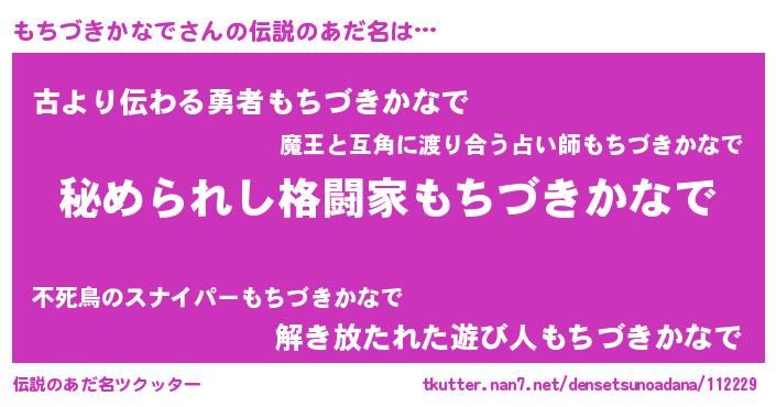| 胡散臭い通販商品みたいなあだ名 | 『ガンによく効く高麗人参…その名も「もちづきかなで」』 |