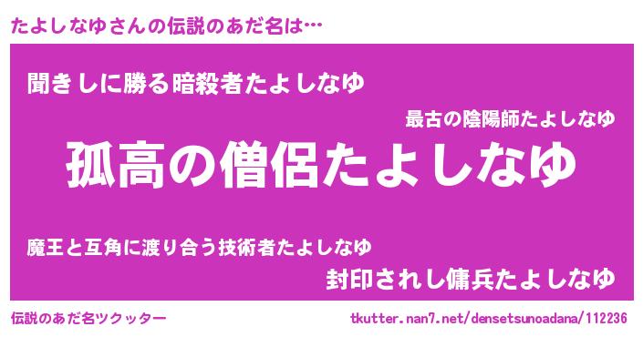 | 女子向けラノベタイトル風あだ名 | 『たよしなゆは平凡を望む』 |