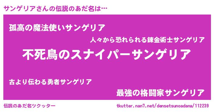 | ヒーロー風カッコイイあだ名 | 『スーパーサンゲリア』『幻影騎士サン』 |