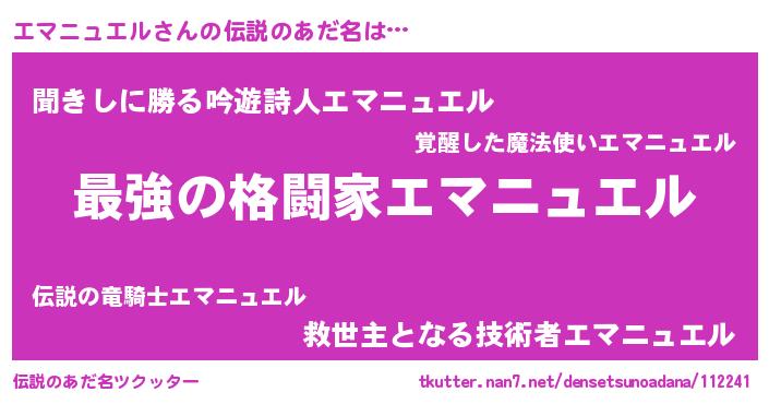 | ヒーロー風カッコイイあだ名 | 『ウルトラエマニュエルマン』 |