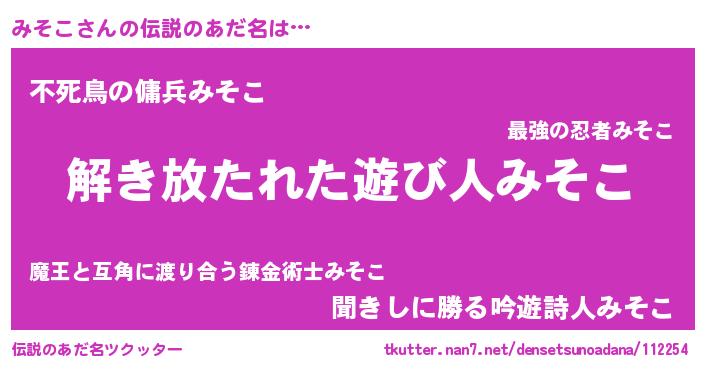 | ヒーロー風カッコイイあだ名 | 『銀牙騎士ミソ』『最強戦士ミソコ』 |