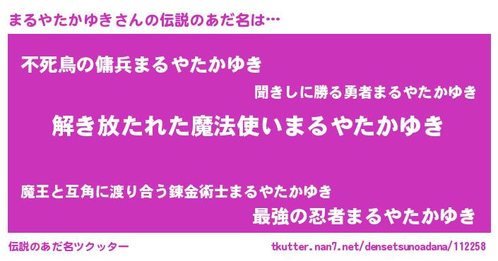 | 男性向けラノベタイトル風あだ名 | 『ダンジョンにまるやたかゆきを求めるのは間違っているだろうか』 |