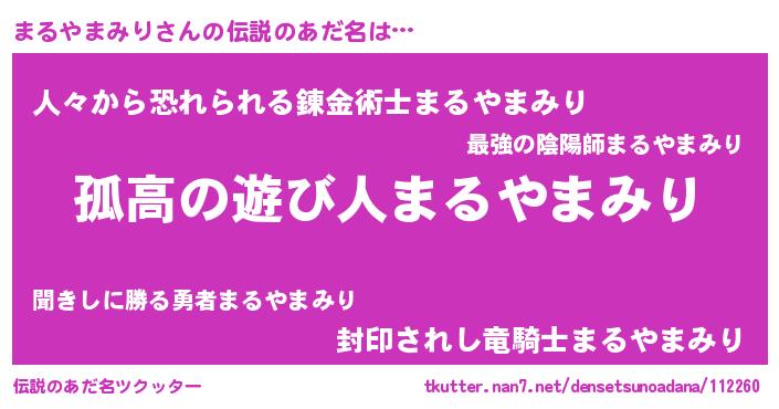 | 意味不明あだ名 | 『とにかく怪しいまるやまみり』 |
