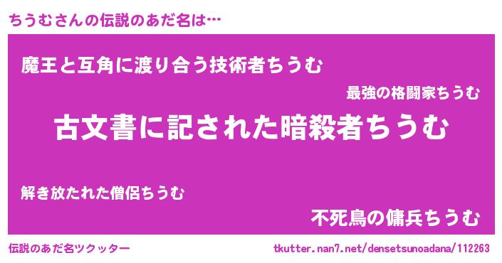 | ヘコむあだ名 | 『ちうむ(爆)』『ちうにゅー』 |
