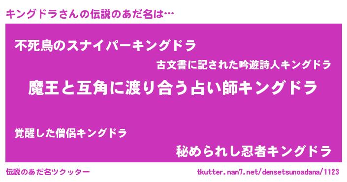 | 女子向けラノベタイトル風あだ名 | 『キングドラ恋絵巻』 |