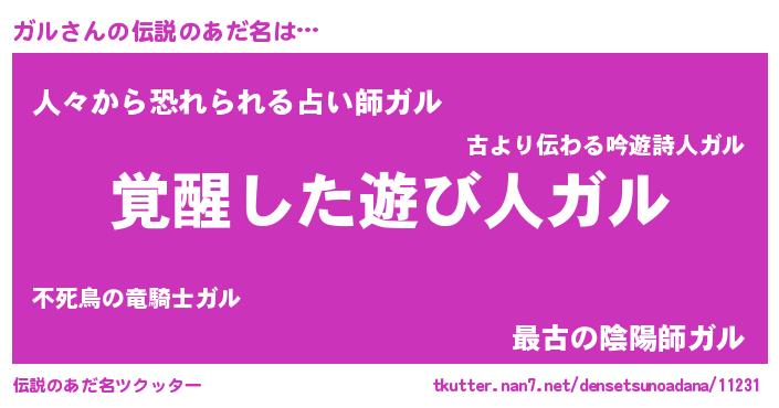 | ヒーロー風カッコイイあだ名 | 『究極戦士ガル』『黄金騎士ガル』 |