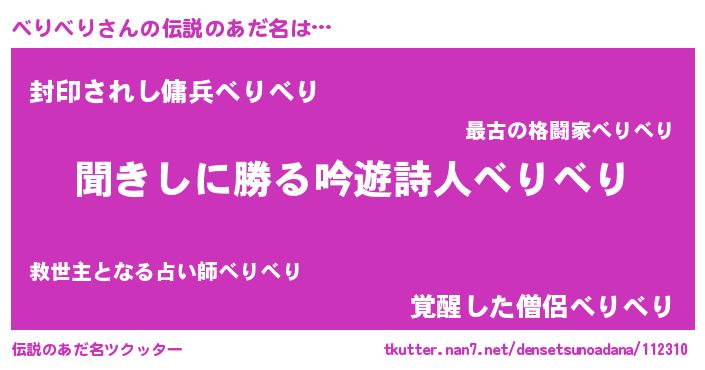 | ヘコむあだ名 | 『べりべり(小並感)』『べりっふぃ~』 |