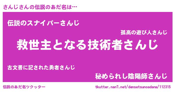 | ヒーロー風カッコイイあだ名 | 『天空の使者さんじ』『超時空戦士サンジ』 |