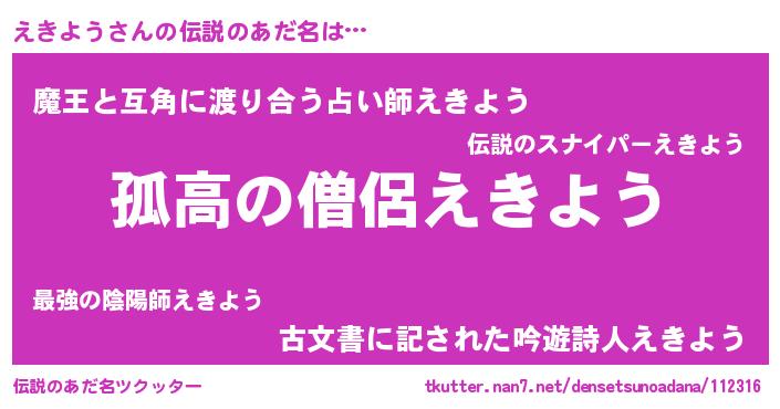 | ヒーロー風カッコイイあだ名 | 『仮面エキダー』『魔戒騎士エキ』 |