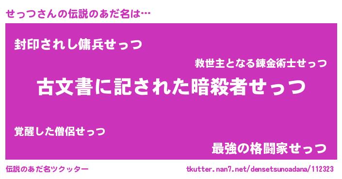 | ヒーロー風カッコイイあだ名 | 『ネオセッツ』『究極戦士セッツ』 |