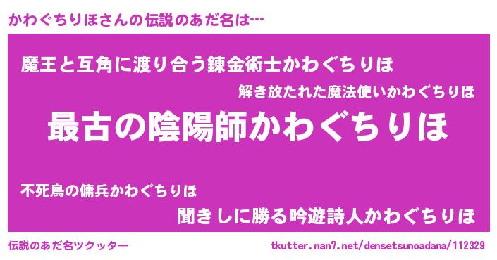 | 男性向けラノベタイトル風あだ名 | 『転生したらかわぐちりほだった件』 |